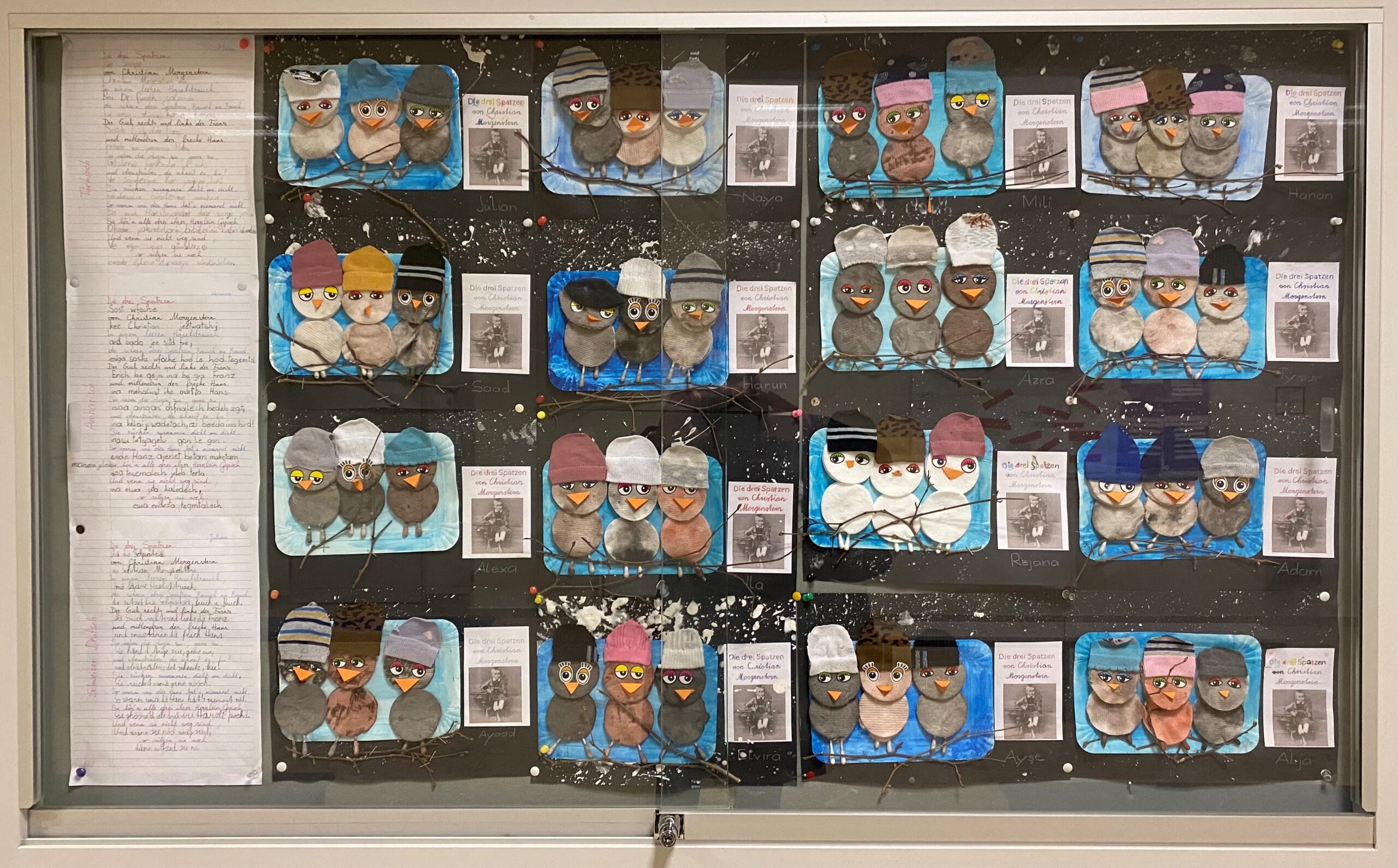 Die Kinder der WiK 2 haben sich intensiv mit dem Gedicht „Die drei Spatzen“ von Christian Morgenstern beschäftigt. Sie haben das Gedicht gelesen, darüber gesprochen, es mit Hilfe der Eltern in viele Sprachen übersetzt, es in der Schulversammlung vorgestellt und schließlich noch eine entzückende Bastelarbeit gestaltet. Vielen Dank, liebe WiK 2!